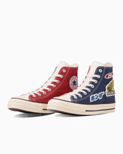Hondaのレトロなジャケットやキャップをモチーフにしたデザインで、Hondaのバイクを代表するカラーリングでありコンバースとの親和性も高いトリコをマルチカラーで表現。