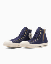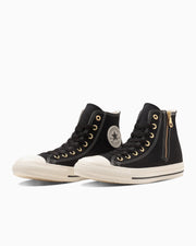 ゴールドのジッパーとハトメを採用し、モノクロのアンクルパッチやアッパー同色のシューレースを採用。