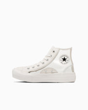 人気の厚底PLTS(プラットフォームソール)タイプに、近年バッグや小物で人気のクリア素材をアッパーに採用したインパクトのあるデザイン。