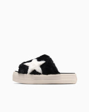 コンバースらしい大きな星がキャッチーなデザインのふわふわとしたボアを採用。