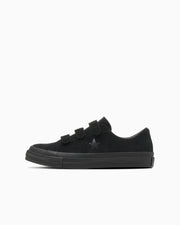 スエードのアッパーと、着脱性に優れたV-3パターンを採用。