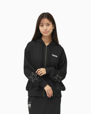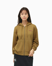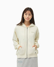 ポリエステルコットン素材を採用した裏毛のジップアップパーカー。