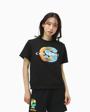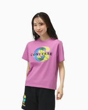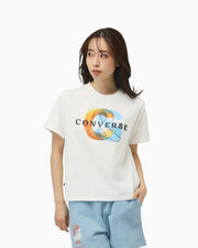 中肉で汎用性の高いコットン天竺を使用したレギュラーシルエットのTシャツ。水彩のようなグラデーションで表現した美しいロゴのグラフィックが特徴。