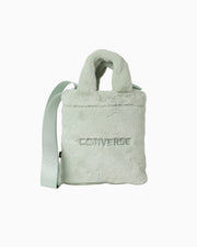 コンバースのロゴマークが同系色の刺繍で表現され、落ち着いた雰囲気の小さめのボディバッグ。