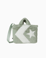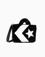シェブロン&スターのロゴをファーで大きくデザインしたトートバッグ。