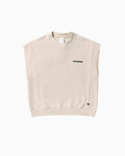 肌触りが良く快適なスウェット素材を使用したクルーネックのノースリーブプルオーバー。ゆったりとしたサイズ感で、脇の切り替えが特長です。