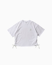 ゆったりとしたサイズ感で、脇に配したドローコードにより着用感を調整することが可能です。左胸にはアーチ状のロゴが配置され、シンプルながらも目を惹くデザインです。