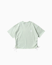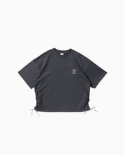 ゆったりとしたサイズ感で、サイドに配したドローコードにより着用感を調整することが可能です。左胸にはアーチ状のロゴが配置され、シンプルながらも目を惹くデザインです。