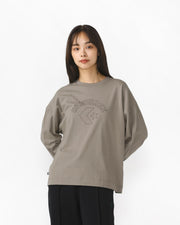 着心地のよい上質なコットン素材を採用したロングスリーブTシャツ。ステッチ風の刺繍で表現したアーチ状のロゴデザインが特徴。
