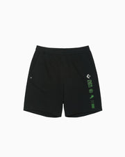 肌触りの良いスウェット素材を使用したショーツ。左ポケット位置にグラフィックを配置したデザインが特徴。シェブロン&スターは再起反射プリントを採用。