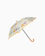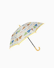 カラフルなシューズがモチーフのキッズ傘。ビビットなイエローとオレンジのカラーの2色展開。
