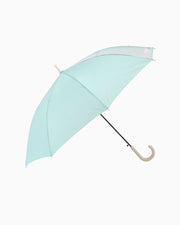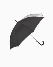 通学にも便利なシンプルデザインのワンタッチで開くジャンプ式のキッズ雨傘。ロゴがアクセントになっています。透明窓で視界を確保+手元は抗菌仕様で安心安全にも配慮しています。