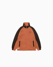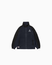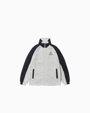 保温性と保湿性に優れたメランジフリース生地を採用したスタンドカラーのジャケット。