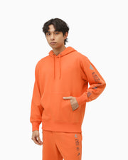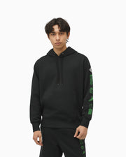 肌触りの良いスウェット素材を使用したスウェットフーディ。左袖にグラフィックを配置したデザインが特徴。シェブロン&スターロゴは再起反射プリントを採用した1枚。