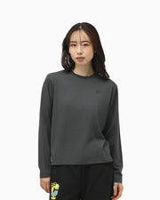 表面が滑らかでソフトな天竺素材のロングスリーブTシャツ。写実的なタッチの兎とWEAPONを背景にしたデザインが特徴。袖口のリブがないすっきりとした仕様もポイント。