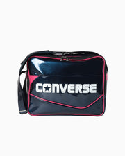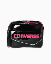 光沢感があるエナメル素材のショルダーバッグ。容量は約20ℓで、クラブ活動はもちろん通学にも最適。シンプルなロゴが魅力。