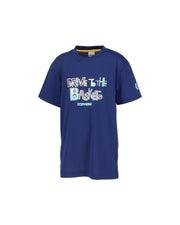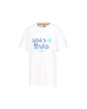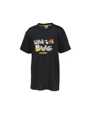 ポップなロゴにバスケットボールのモチーフを使ったジュニア向けグラフィックTシャツ。