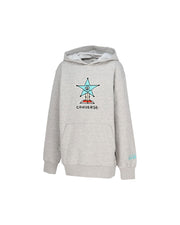 コンバースのジュニアスウェットパーカ―。Yutaka Kobayashiさんの星のイラストを採用。裏地はタオル地のように柔らかい、頑丈で汗を吸収しやすい素材を使用。