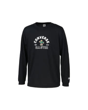 コンバースベアのグラフィックプリントがめをひく、ロングスリーブTシャツ。柔らかな肌触りに吸汗速乾を兼ね揃えたスポーツ向けアイテム。