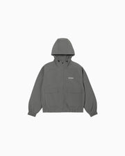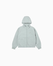 メカニカルストレッチ、吸汗速乾、UVカット機能のあるポリエステル100%の素材を採用したフーディージャケット。