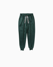 吸汗速乾性を備えた光沢感のあるポリエステル素材のスウェットパンツ。パンツの前面にピンタックを配した、カジュアルなシーンからアクティブなシーンまで幅広く着用が可能なアイテム。CONVERSEのロゴがプリントされたドローコードもポイント。