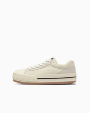 バルカナイズド製法や、トウキャップ、トウガードといったオールスターのアイコニックなディテールが、斬新なシルエットの中にも継承されています。