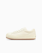 バルカナイズド製法や、トウキャップ、トウガードといったオールスターのアイコニックなディテールが、斬新なシルエットの中にも継承されています。