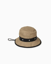 涼し気なベージュに縁取りのブラック、リボンのスター、ポシェットにした際に出てくるシューレースデザインがポイント。