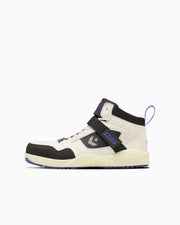 90年代のコンバースのバスケットボールシューズを代表するモデルのひとつ「ランスラム」をベースに、特徴的なベルトパターンをデザインに取り入れてホールド性を向上。