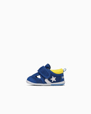 ビビッドな色合いと実用性を兼ね備えた、ベビーにぴったりの一足です。