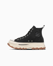 オールスターの定番スタイルに、トレッキングシューズをモチーフにしたボリュームのあるアウトソールを融合させたトレックウエーブのパターン、素材アレンジモデル。