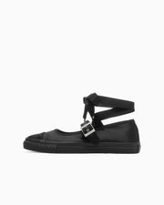 足首を固定するリボンテープをイメージした、取り外し可能なコットンサテンのテープが付属。