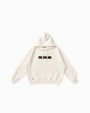 肌触りが良く快適なスウェット素材を使用したフード付きのプルオーバー。