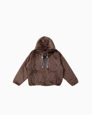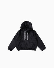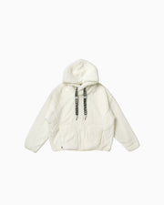 ソフトで暖かく、ボリュームを持たせた首元が特徴。フード口に使用したCONVERSEのロゴがプリントされたドローコードがポイント。