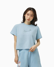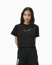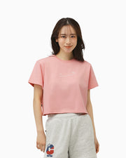 中肉で汎用性の高いコットン天竺を使用したクロップド丈のTシャツ。前胸に筆記体でconverseと星が描かれたデザインが特徴。スポーツシーンはもちろん、カジュアルにも合わせやすい1枚。