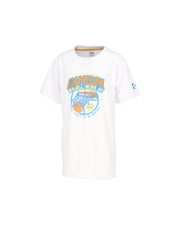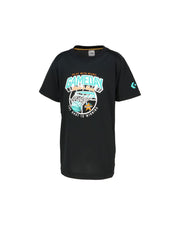 コンバースのジュニアTシャツ。カレッジロゴをイメージするグラフィック。柔らかな肌触りに吸汗速乾を兼ね揃えたスポーツ向けアイテム。