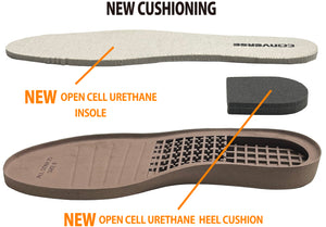 外観のシルエットを変えることなく、甲周りにゆとりをもたせた新たなラストを採用。アウトソールにはウエッジ(傾斜)を設けることで、着用時の後傾感の改善と歩行時の安定性の向上を実現しました。