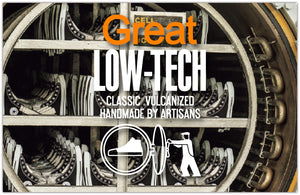 後に加硫缶と呼ばれる専用の窯で加熱、加圧することで、生ゴムに化学反応を引き起こし、柔軟性と耐久性に優れた靴に仕上げる「バルカナイズ製法」を1917年の生誕以来貫いています。