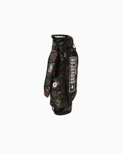 コンバースを代表するアイコンのひとつ、オールスターのアンクルパッチデザインを使用したスタンドキャディバッグ。 キャンバスをイメージした目の粗いポリエステルに、シューズでも人気の迷彩柄を採用したモデル。 サイドの「CONVERSE MADE FOR GOLF」ロゴ、前袋に配置したモノカラーオールスターのアンクルパッチデザインがポイント。口枠やボトムにはブラックを使用し、スポーティでありながらもシックな雰囲気に仕上げたデザイン。