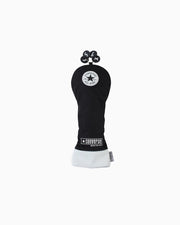コンバースを代表するアイコンのひとつ、オールスターのアンクルパッチデザインを使用したフェアウェイウッド用のヘッドカバー。 キャンバスをイメージした目の粗いポリエステルに、シボ感の強いシンセティックレザーを合わせたモデル。モノカラーオールスターのアンクルパッチデザイン、刺繍で仕上げた「CONVERSE MADE FOR GOLF」ロゴがポイント。 ベーシックなブラック、深みのあるレッドとグリーン、シンプルでクラシックな印象の3カラー展開。 クラブの取り出しをサポートする、3、5、7、Xの番手タグ付き。