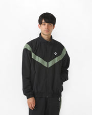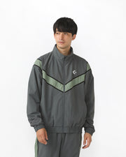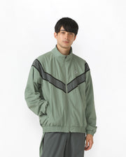 撥水性のあるナイロン素材と裏地のメッシュ、背面のベンチレーションで快適な着心地のトレーニングジャケット。