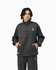 撥水機能とストレッチ性を備えた高機能なポリエステル素材を採用したジャケット。
