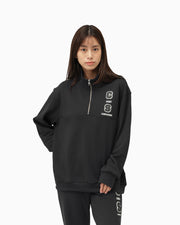 ポリエステル100%の裏毛素材を採用したハーフジップスウェット。